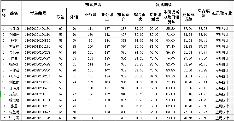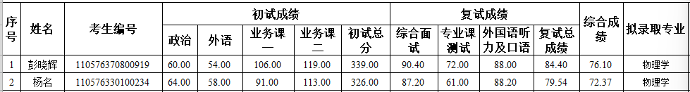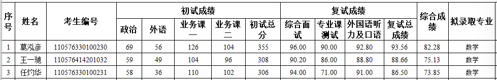 备注:复试成绩=综合面试×50%+专业课测试×30%+外语听力及口语面试×20%