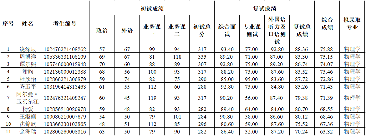 备注:复试成绩=综合面试×50%+专业课测试×30%+外语听力及口语面试×20%