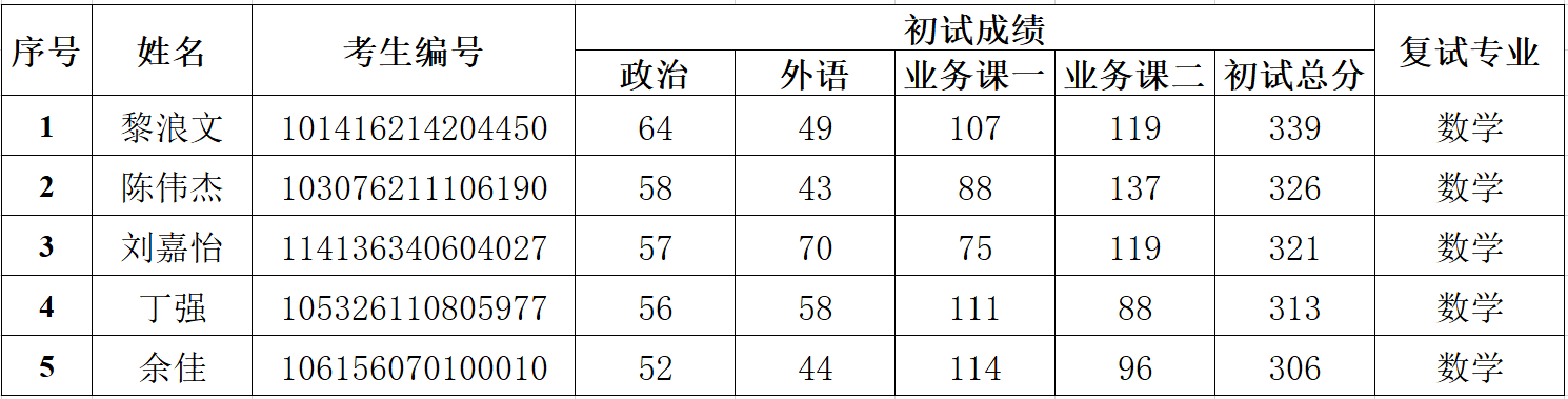 理学院2026年硕士研究生拟录取名单公示11(数学)