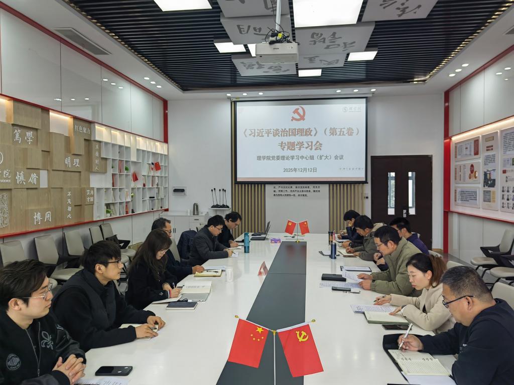 12月12日,理学院召开党委理论学习中心组(扩大)会议,专题学习《习近平谈治国理政》第五卷,会议由学院党委书记丁炳泉主持,校党委副书记张日向到会巡听旁听。
