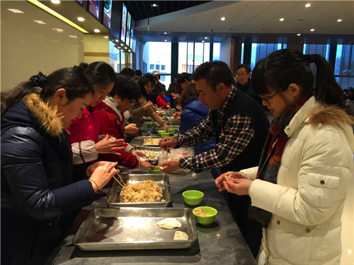 在此起彼伏的呐喊声中,一项项惊险刺激的项目如勇往直前(袋鼠跳)、无敌风火轮、心心相印等游戏激起了老师们的参与热情,各组的比分你追我赶,好不热闹。最终,四支队伍以各项比赛累计的总分决出了名次。运动会结束后,大家来到新教工食堂参加迎新春包饺子系列活动,各式风格的饺子包法,造型多样的饺子造型,从下锅、煮熟、入碗,吃进去的是饺子,暖的是心意。