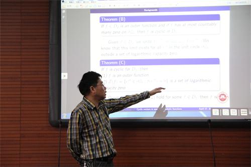 5月6日下午,福建师范大学叶善力教授做客和山数学论坛第70讲,做了题为“解析函数空间的循环元”的学术报告。活动由校学科带头人、理学院院长陶祥兴教授主持,我院部分教师参加了本次活动。