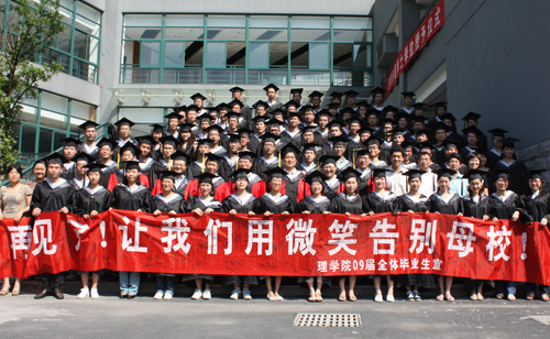 6月25日下午,我院2009届毕业生参加了学校举行的毕业生学士学位授予仪式,仪式由理学院党总支书记苗红亚主持。校长杜卫,校党委副书记、副校长陈根芳,副校长赵东福,理学院副院长岑岗及校学位委员会成员陈兴伟、胡开堂教授参加了仪式,并为每一名获得学位的毕业生授予学士学位证书、拨流苏。参加学位授予仪式的还有理学院副院长阮世平、理学院老书记杨治清、理学院全体教授、辅导员和毕业班班主任。